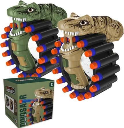 - The Soft Bullet Gun Dinosaur is a fun, manual toy gun designed in a cool dinosaur shape. It shoots soft foam bullets safely without any batteries. Made from durable and lightweight plastic, it’s easy to load and fire — perfect for kids aged 5+. Great for indoor and outdoor play, it helps improve aim and coordination while keeping playtime exciting.