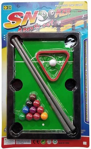 • Complete snooker set with mini table, balls, cues, and triangle frame